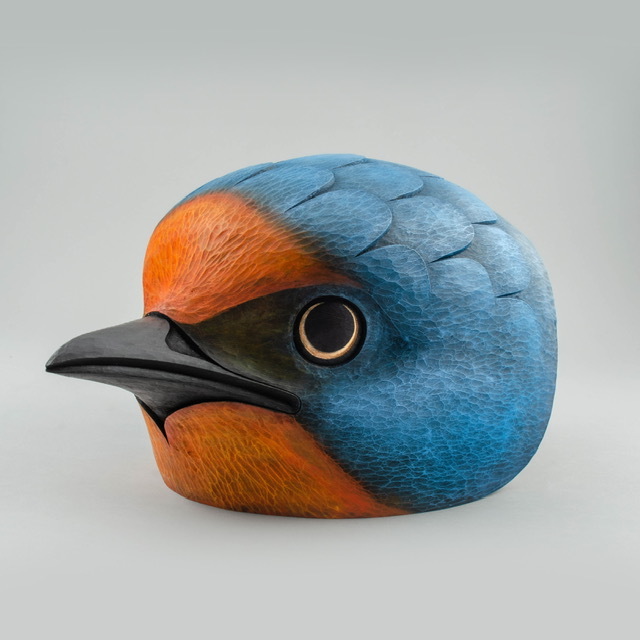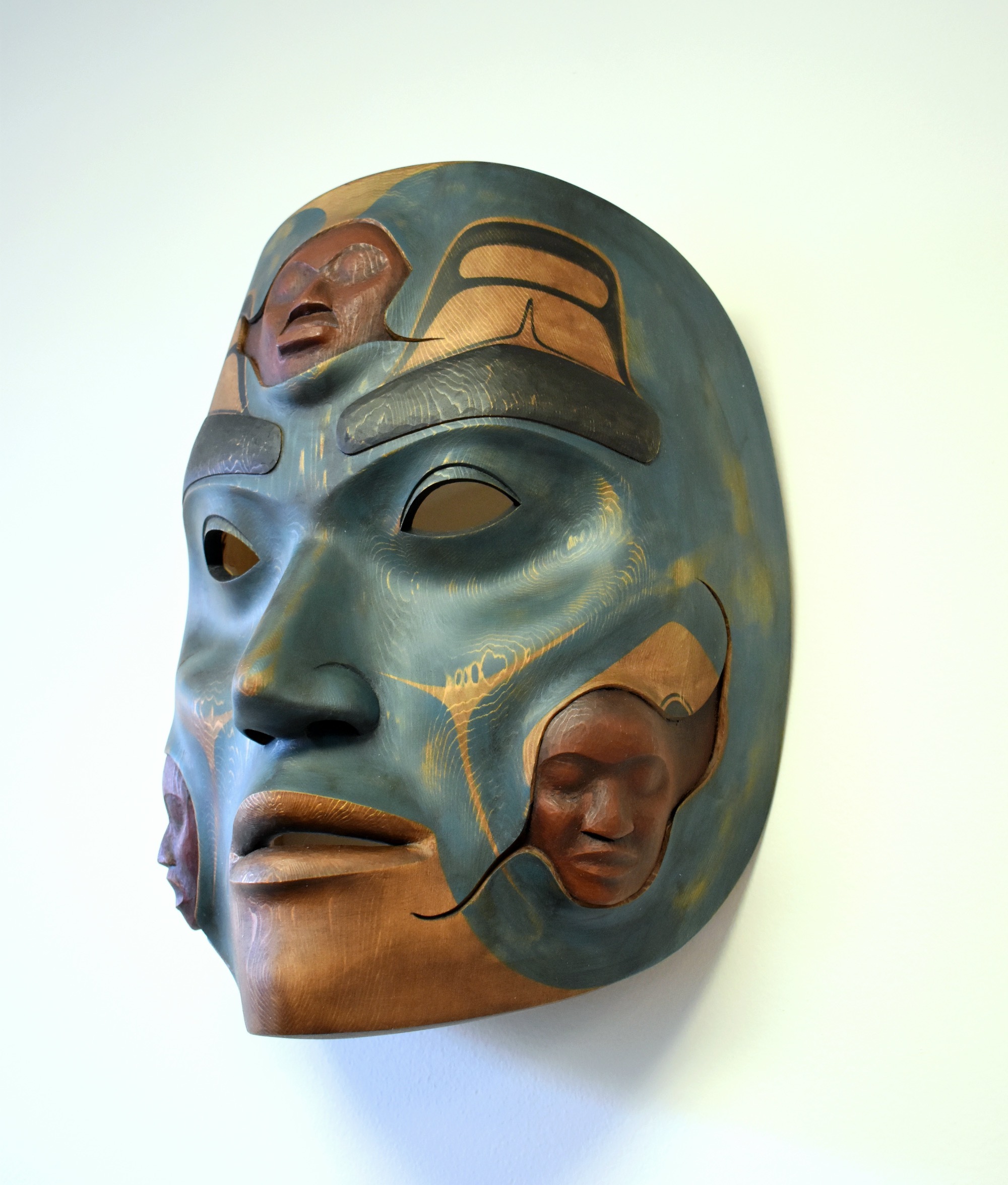 "This mask is called 'In my blood' and it speaks to the idea of genetic memory. The small faces represent my ancestors that I share blood with."