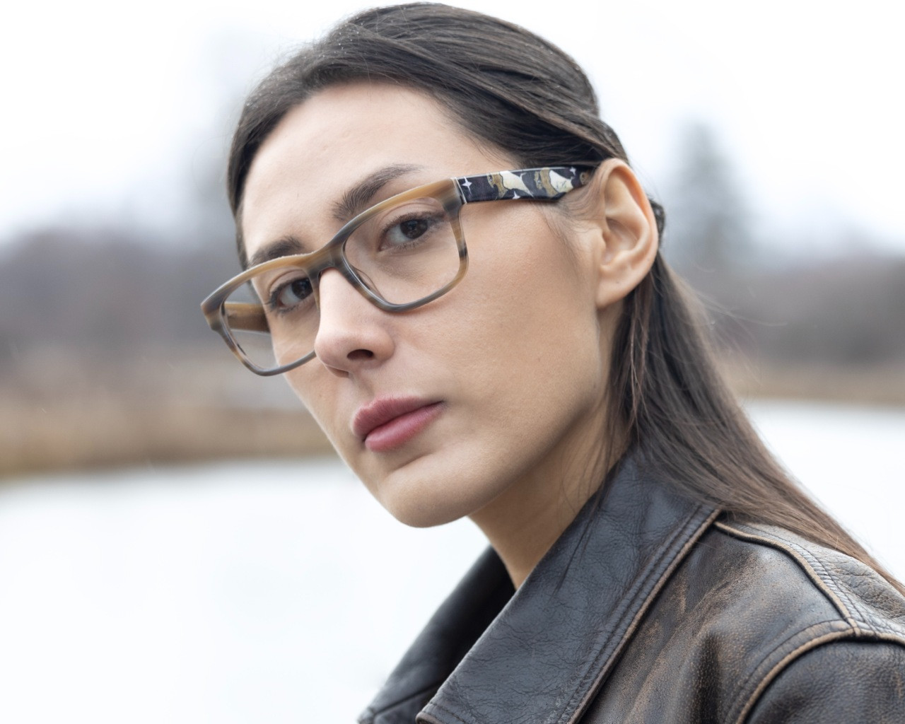 Ledger – a bold eyewear style crafted from high-quality custom acetate inspired by buffalo horn materials with spring hinges for ultimate comfort and durability.