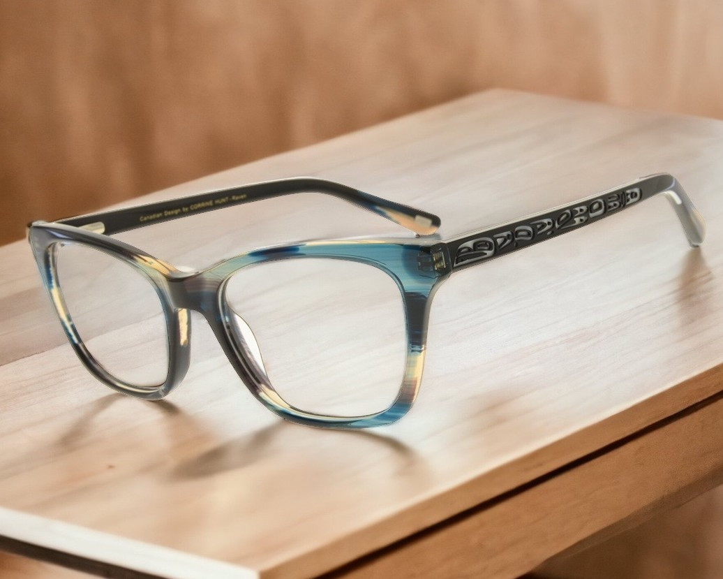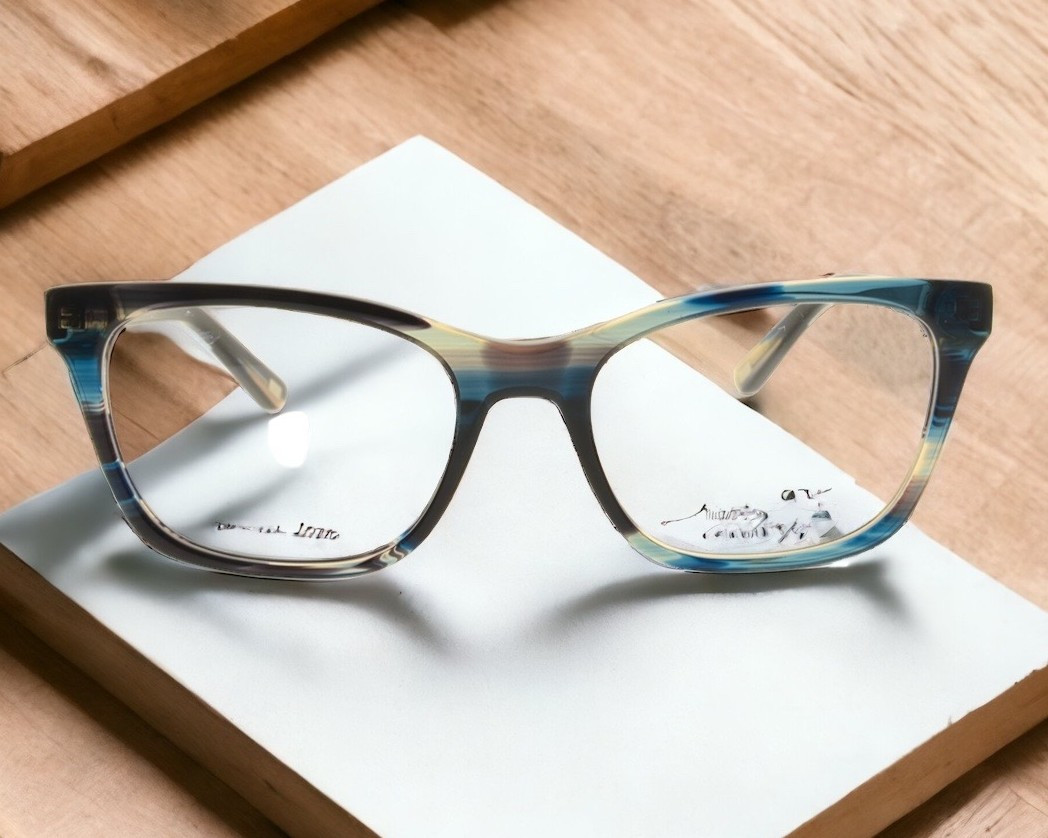 Introducing the extraordinary "Anita" Cateye Optical Fashion Frame: A visionary masterpiece that takes eyewear to new heights. Featuring the mystical raven by Corrine Hunt, these frames enchant with intricate details and unmatched elegance. Choose from the mesmerizing striated blue acetate or the bold champagne and teal fusion, adding a touch of magic to your style. With contrasting temple tips, each frame is meticulously crafted, showcasing the perfect blend of artistry and innovation. Step into a world where sophistication meets playfulness. Cateye frames are loved for their timeless allure and face-flattering shape, adding a hint of vintage charm to any ensemble. The "Anita" is your ticket to standout style with effortless grace. Experience the extraordinary and make a statement that's uniquely you. Don't settle for ordinary frames; embrace the exceptional. Order your pair of "Anita" frames today and embark on a journey of unmatched sophistication. Elevate your style game and let your individuality shine bright.