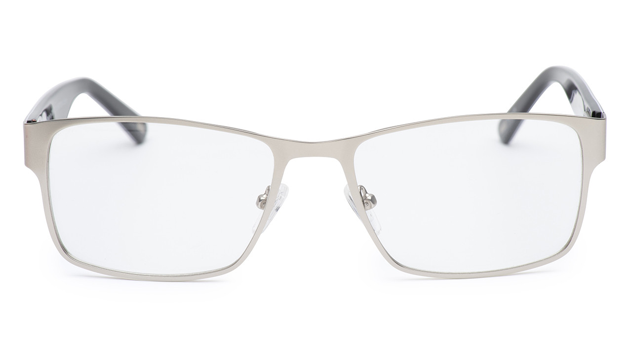 Available in a matte black, blue, gun metal or satin silver metal front with black acetate temples, this frame is functional and striking. Jacob has a spring hinge for additional flex and comfort and adjustable nose pads to help you get the perfect fit!