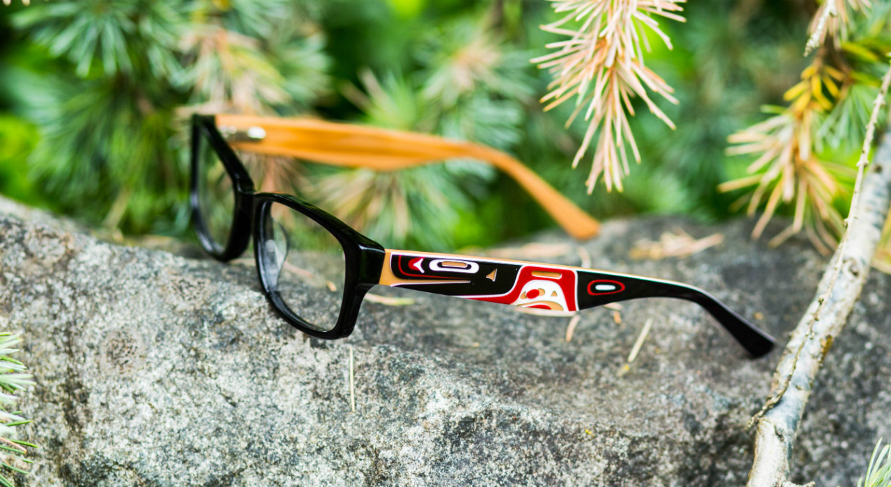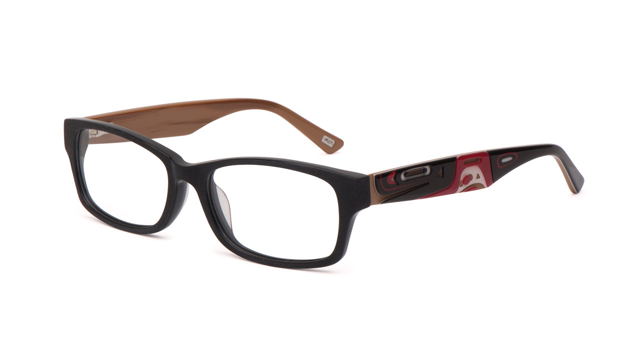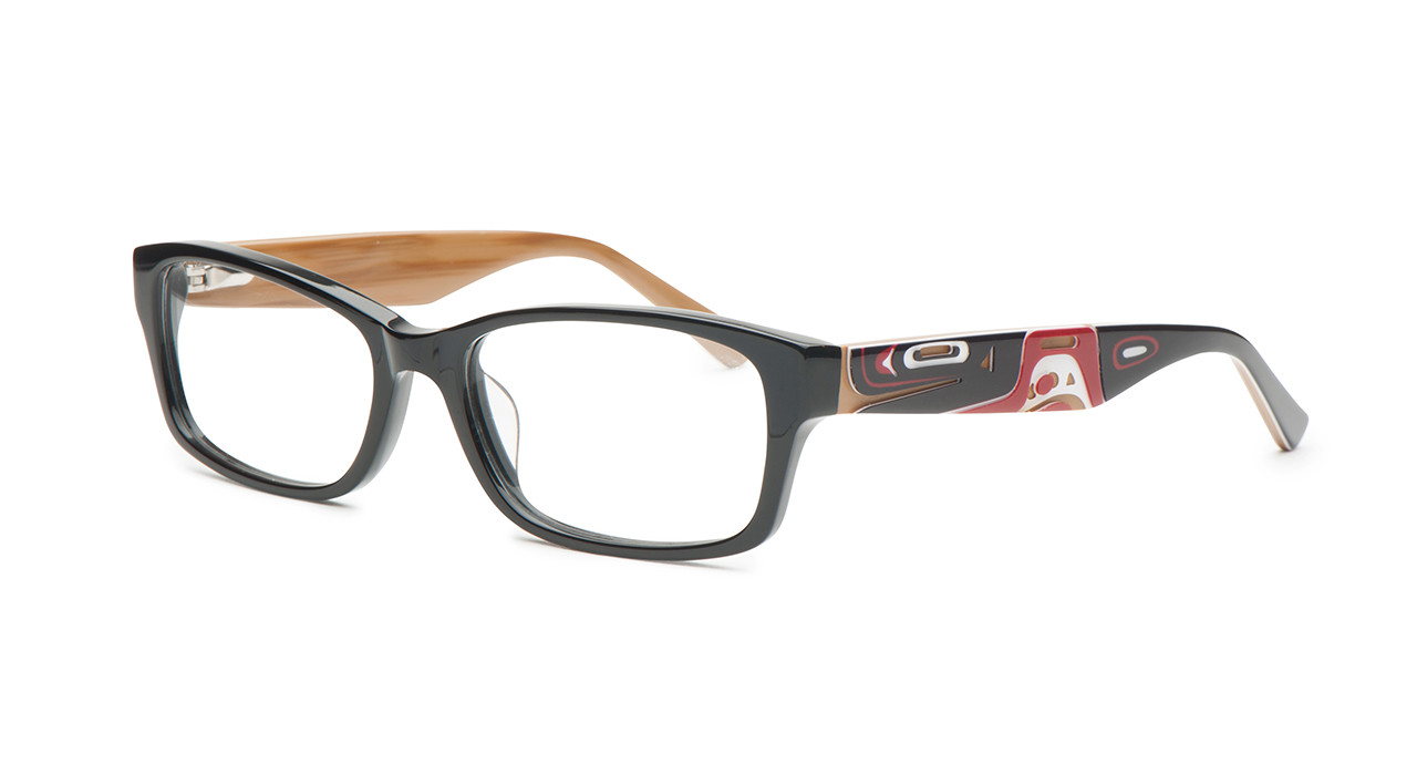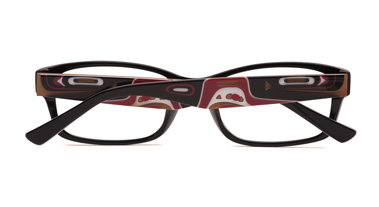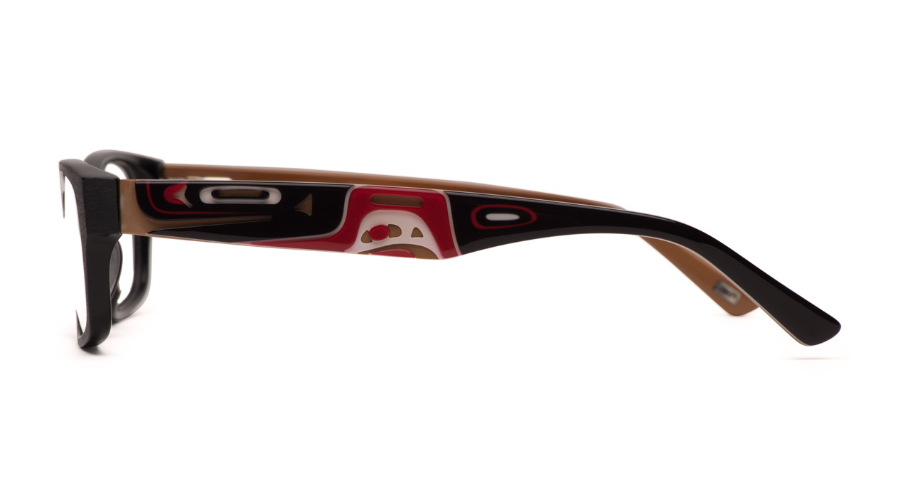 The artwork of Kwakiutl and Tlingit artist Corrine Hunt is beautifully captured on the temples using high definition printed graphics and detailed cut-outs to highlight the vivid artwork.